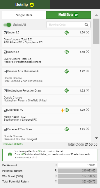 To load these game into your bet slip click here and input bet Booking code U165BBB5F
