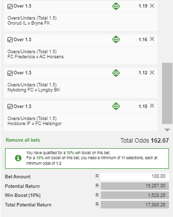 162 ODDS = 21 Leg Ticket – R100 Pays R17 895