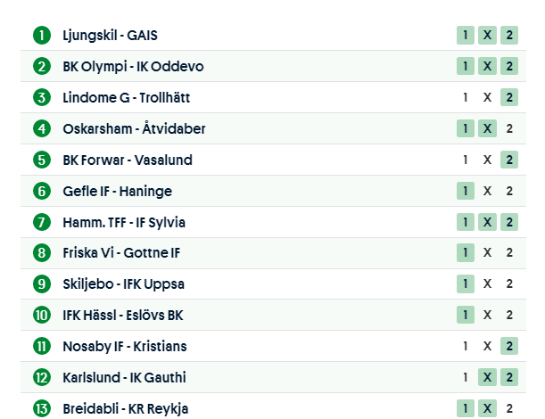 | M9 | Skiljebo SK | 19:00 (1X) o/1.5 |