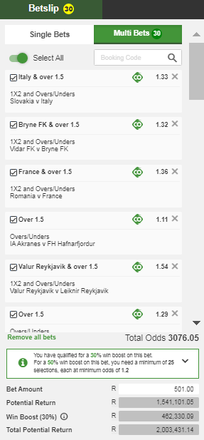 M1 | Slovakia U19 | 17:30 (2) O/1.5 | Italy U19 |