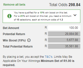 Doubles/Triple Chance Bets cost extra