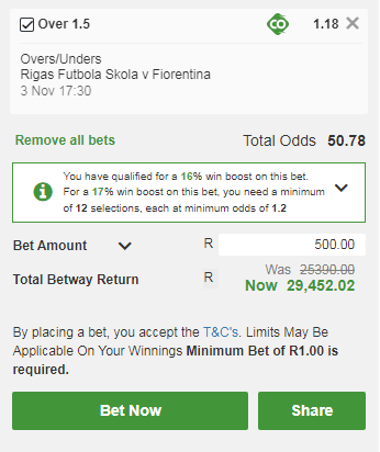 Combine several legs (Accumulator) to get higher combined odds and a bigger payout, more legs = more risk!