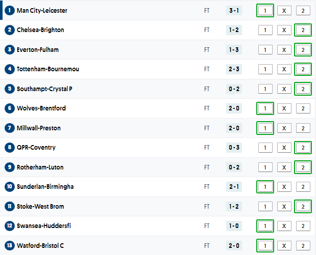 Soccer 13 Payouts For Today – Sat 15 Apr