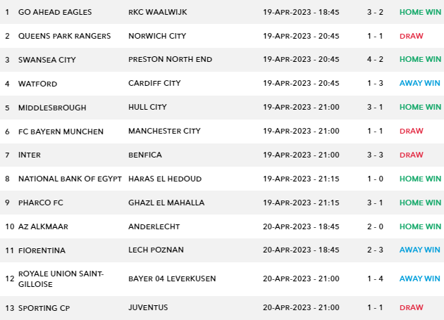 Sportstake 13 Payouts For Today – Wed 19 Apr