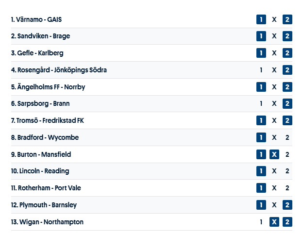 | M1 | Halmstad L W L | (x2) O/1.5 | Hacken D W W |